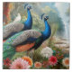 Par de Pavões Azul Turquesa Elegantes Azulejos de