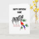 Adicione nome e outro texto a esse desenho de zebras e papagaio. As zebras se surpreendem com a idade das pessoas, mas o papagaio diz para não se preocupar. Zebras raramente chega aos quarenta.