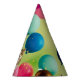 Chapéus de festa de aniversário com um par de gatinhos de aniversário bonitos flutuando em balões coloridos espalhados por estrelas de ouro reluzente. Use o menu à direita para editar e escolher entre uma faixa de diferentes opções.