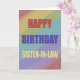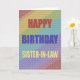 Um arco-íris feito de cruz ou tapeçaria com Happy Birthday bordado.
