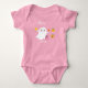 Body infantil rosa fofo com uma pequena fantasma segurando doces de Halloween. Personalize com um nome ou deixe como está, só por diversão.