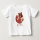 Camiseta de bebé personalizável com uma ilustração de um esquilo vermelho fofo segurando um amendoim, com um círculo bege ao fundo, um design de animal fofo para crianças por Radka Kavalcova