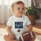 Celebre o primeiro ano do seu pequeno com esta adorável camiseta temática de futebol "Primeiro Ano, Primeiro Down". Com letras azuis-marinho em negrito e um gráfico clássico de futebol, esta camisa é perfeita para qualquer jovem fã. É uma maneira ideal de comemorar um aniversário ou simplesmente mostrar o amor pelo jogo. Feita com tecido confortável, esta camiseta é ótima para o uso diário, festas ou até mesmo um dia de jogo casual. Adicione um toque de espírito esportivo ao guarda-roupa do seu filho com este design único e atraente.