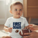 Celebre o primeiro ano do seu pequeno com esta adorável camiseta temática de futebol "First Year First Down". Com letras em azul-marinho em negrito e um gráfico clássico de futebol, esta camisa é perfeita para qualquer jovem fã. É uma maneira ideal de comemorar um aniversário ou simplesmente mostrar o amor pelo jogo. Feita com tecido confortável, esta camiseta é ótima para o uso diário, festas ou até mesmo um dia de jogo casual. Adicione um toque de espírito esportivo ao guarda-roupa do seu filho com este design único e atraente.