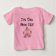 Uma menina adorável com um arco rosa, pacificador rosa e texto preto que diz "Eu sou o Novo Sis!" em t-shirts, roupas de cama, sacos de tote, e mais do que você pode personalizar no local com texto ou nome!