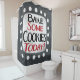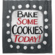 "Assar Alguns Cookies Hoje" é um design de texto bonito em cinzas com texto preto e vermelho. Ela se senta em uma forma de sotaque branca e bolinhas brancas giras ao seu redor.