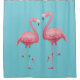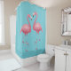 A cortina de chá é mostrada numa cor sólida de aqua profundo com um impressão flamingo tropical fofo. Procure o tapete de banho correspondente Personalize este item ou comprar como está.
