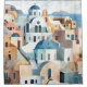 Um vislumbre do mar é visível sobre os telhados desta cena mediterrânica.