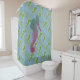 Cortina de chá com cavalos-marinhos e padrões de fundo de listras e belos desenhos de cavalos-marinhos.