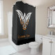 Ícone de pássaro estilo tribal inspirado em designs de nó celta. Cor de fundo personalizada. Texto personalizado.