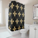 Teste padrão de flor dourado bonito da flor de lis na cortina de chá preta do fundo. A esteira de banho e os acessórios de harmonização do banho estão igualmente disponíveis.