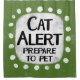 Um design de animais tipográficos irreverente e fofo que diz "Cat Alert, Prepare to Pet". Ele apresenta texto preto e vermelho em um retângulo branco com pontos brancos engraçados e brincalhões ao redor dele, tudo em um fundo de cinza.
