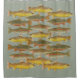 Cortina do chá design de Trout projetada e arte original de aquarela pelo Thom Glace. As características são quebradas, marrom e truta arco-íris.