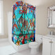 Esta cortina de chá de vidros manchados e fofinhos apresenta um elefante e outros animais.