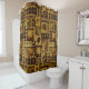 Dê a seu banheiro uma sensação tribal com esta cortina de chá em um design havaiano do tapa, caracterizando os guerreiros do petroglyph e o honu, pintados nas matiz de oxida e bronzeia.