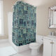 Dê a seu banheiro uma sensação tribal com esta cortina de chá em um design havaiano do tapa, caracterizando as palmeiras e os guerreiros e o honu do petroglyph, pintados em azuis brilhantes.