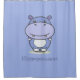 Um hipopótamo bonito em uma cortina de Chá azul com um texto personalizável para um tempo de banho engraçado!