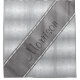 As estrelas de prata são exibidas sobre um fundo de bandas largas de cinza a prata. Diariamente, ele tem uma faixa ampla, que parece metálica, com seu nome inscrito em um carvão profundo.