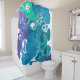Esta bela cortina de chá roxa e turquesa torna o seu banheiro mais sofisticado.