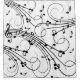 Design branco com bares de música encaracolada e notas de quarteirão dançantes