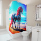 Esta cortina de chá tem um unicórnio fotografado nela.