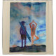 Pintura de surf e Yoga, inspiração para amantes do esporte e fãs da natureza. Legal arte original na cortina de chá.