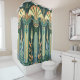 Linda cortina de chá com colunas ousadas do estilo de deco em tons de verde.