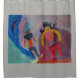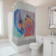 Palhaços, magia, arte de fora. Expressionismo. Pintura de abstrato figurativa. Lua roxa. Pintura infantil. Cortina verde, rosa, chá de pintura amarela.