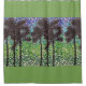 Palmeiras, em silhueta, contra um céu verde e azul. O céu é criado por pontos coloridos individuais em verdes, e azuis, em tamanhos variados. O fundo em amarelo-verde pode ser alterado à sua escolha.