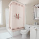 Um antigo item de banheiro branco-rosa-branco-boêmico de cor sólida. Edite facilmente o nome e a versão inicial usando a ferramenta de personalização do Zazzle. Cortina de Chá Pessoal Rosa Boho. Veja a nossa coleção para cores mais bonitas. Texto a cores #F8E3DA