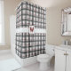 Um padrão clássico e aconchegante de xadrez ganha uma reviravolta na moda, combinando uma combinação clássica de fundo branco com bares pretas e cinzas com um sotaque vermelho rico. Personalize a cortina deste chá para criar uma decoração personalizada para o seu banheiro.