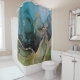 Arte dramática e única para o banheiro. Abstrato intrigante em tons de chalé, aqua, verde e preto com sotaque de ouro líquido. Rochas de tinta alcoólica em lindos tons orgânicos naturais. Arte abstrato original da artista internacional Pauline Benjes. Dramática Cortina Chá Verde Verde Teal.