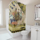 Adicione um toque de decoração eclética ao seu banheiro especial. Esta design de safra tem três mulheres de moda em Paris montando com um velho veículo de moda, marcos de Paris e Poodle francês. Matriz de banho correspondente disponível. Um design único para um banho funk!
