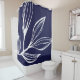 Esta cortina de chá apresenta um desenho ilustrado de linha de fecho abstrato de uma planta marinha. As cores são branca e azul marinho. Perfeito para decor de praias, litorais ou náuticas.