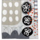 Não desabafar é um abstrato quadrado em cores neutras de bege, cinza, preto e branco. Em um fundo branco molhado, há uma grande forma bege no canto esquerdo com ovais brancos. No centro estão 3 círculos pretos com flores desenhadas em branco. À direita está uma cinza e uma peça branca listrada com pontos vermelhos borrifados acima e no canto inferior esquerdo, uma forma de cinza curva. As marcas de lápis manchadas terminam a peça.