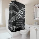 Cortina de chá preto-e-escritura na moda, desenhada com notas musicais. Há um texto personalizável que diz DEIXE TUDO O QUE TEM BREATH PRAISE O SENHOR, que é baseado no Salm 150 e que você pode personalizar para atender às suas necessidades. Disponível em outras cores.