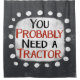 Um design de mensagem tipográfica divertido e fofo que diz "Você provavelmente precisa de um trator". Ele tem texto preto e vermelho em um retângulo branco com pontos brancos engraçados e brincalhões ao seu redor, todos em um fundo de cinza.