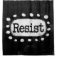 O texto em negrito com "Resistir" é centrado sobre um fundo preto. O texto preto se senta em um retângulo branco com grandes pontos brancos texturizados ao seu redor, fornecendo um contraste lúcido contra o plano de fundo de cor sólida.