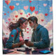 Esta é uma cortina de chá original da Habatour Creations, embelezada com uma autêntica ilustração artística, apresentando um casal, comunicando via celular, com corações voando ao seu redor Copyright do @Habatour Creations Copy ou use sem permissão é ilegal