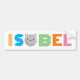 O nome Isobel com a letra O como cabeça de gato. Cada cor individual do texto pode ser alterada, assim como a cabeça dos gatos. Pressione "Reverter para original" após selecionar a cabeça para mudar para um gengibre.