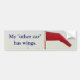 Um adesivo para-choques para pilotos com foto de uma meia de vento laranja e a frase Meu "outro carro" tem asas.