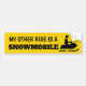 Minha outra carona é um movente de neve em letras maiúsculas pretas misturado com uma imagem ícone de uma pessoa em moto de neve. Montado em amarelo de construção vívido sólido.