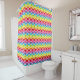 Cortina arco-íris ou cortina de chá de padrão de escala em cores amarela, azul, rosa, roxo, verde, laranja e vermelha em um fundo branco.