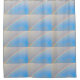 O arco-íris em cinzas e céu azul é replicado sobre a superfície da cortina. Nuvens de cinza sobre o arco-íris e o céu azul com nuvens transparentes por baixo.