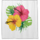 Transforme seu banheiro em um oásis tropical. Esta bela cortina de chá apresenta uma flor de hibisco rosa e amarela com verde atrás dela. Sentir-se-á no paraíso quando entrar no seu chá.