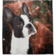 Esta é uma cortina de chá fofa e engraçada para o amante nerd do cachorro. O design é um Boston Terrier olhando para o espaço.