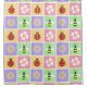 Pares cor-de-rosa, amarelos, roxos e verdes pastel são enfeitados com preguiças, flores de madeira, margaridas, e abelhas de mel, e depois bordados por costura branca apertada para criar um padrão divertido e doce como um patch de primavera.
