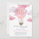 Para cima, para fora! Nossos doces convites para aniversários de criança apresentam um balão de ar quente cor-de-água rosa voando através de nuvens rosadas e fofinhas. Personalize com seus detalhes de festa de aniversário abaixo. Cartões invertidos a rosa pálido sólido.