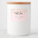 Projetada para coordenar com nossa coleção de casamento Rosa e Dourada Glitter, esta etiqueta adesiva de vela personalizável apresenta uma borda brilhante dourada sobre fundo cor-de-rosa.