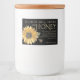 Girassol e abelha em preto. O mel é impresso num texto decorativo em ouro metálico.